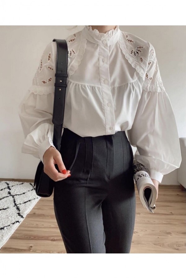 nakış detaylı balon kol gömlek
